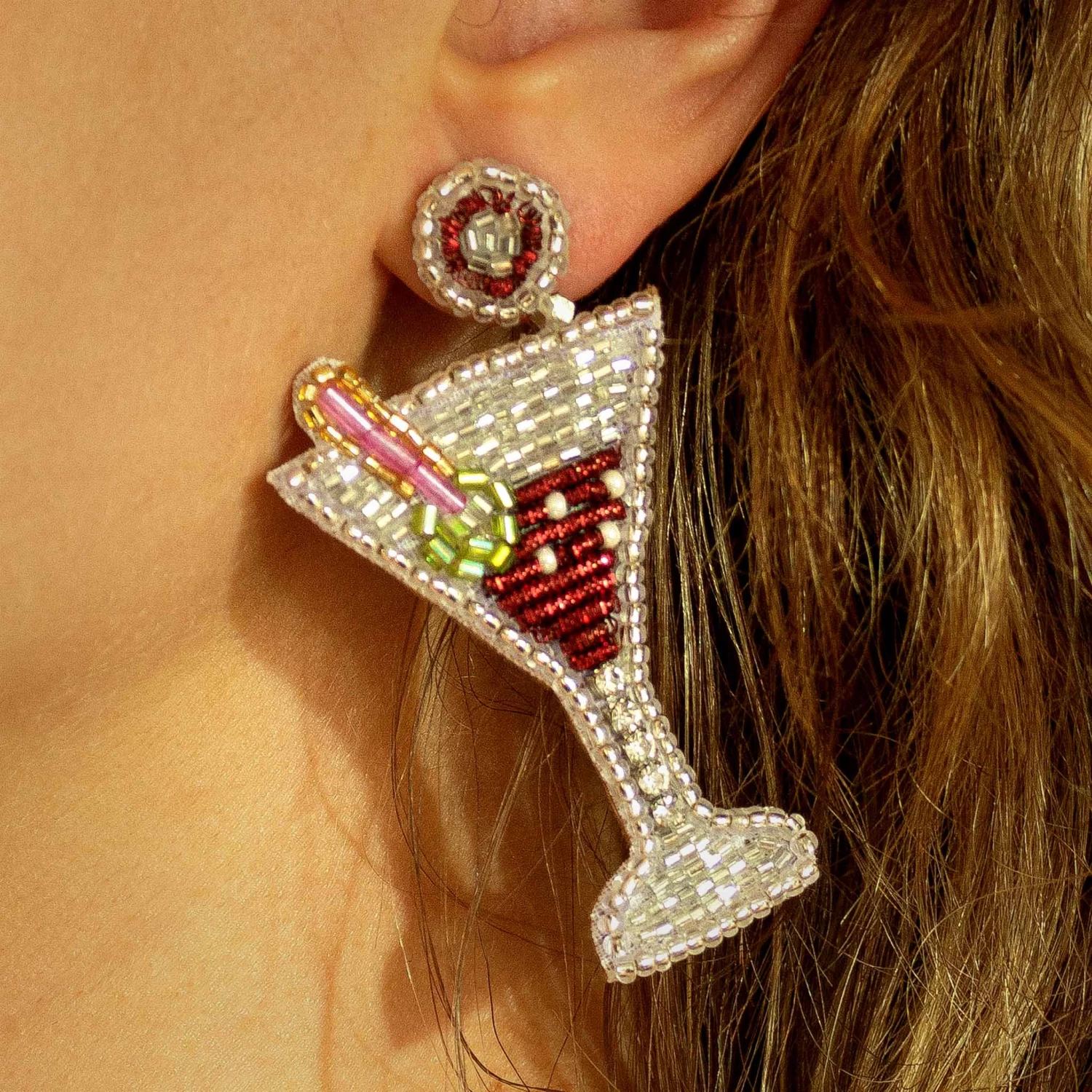 Make ours a martini with a beaded twist. The martini earrings are designed in England and handmade in India bead-by-bead. These glitzy cocktail earrings are lightweight and comfortable to wear.