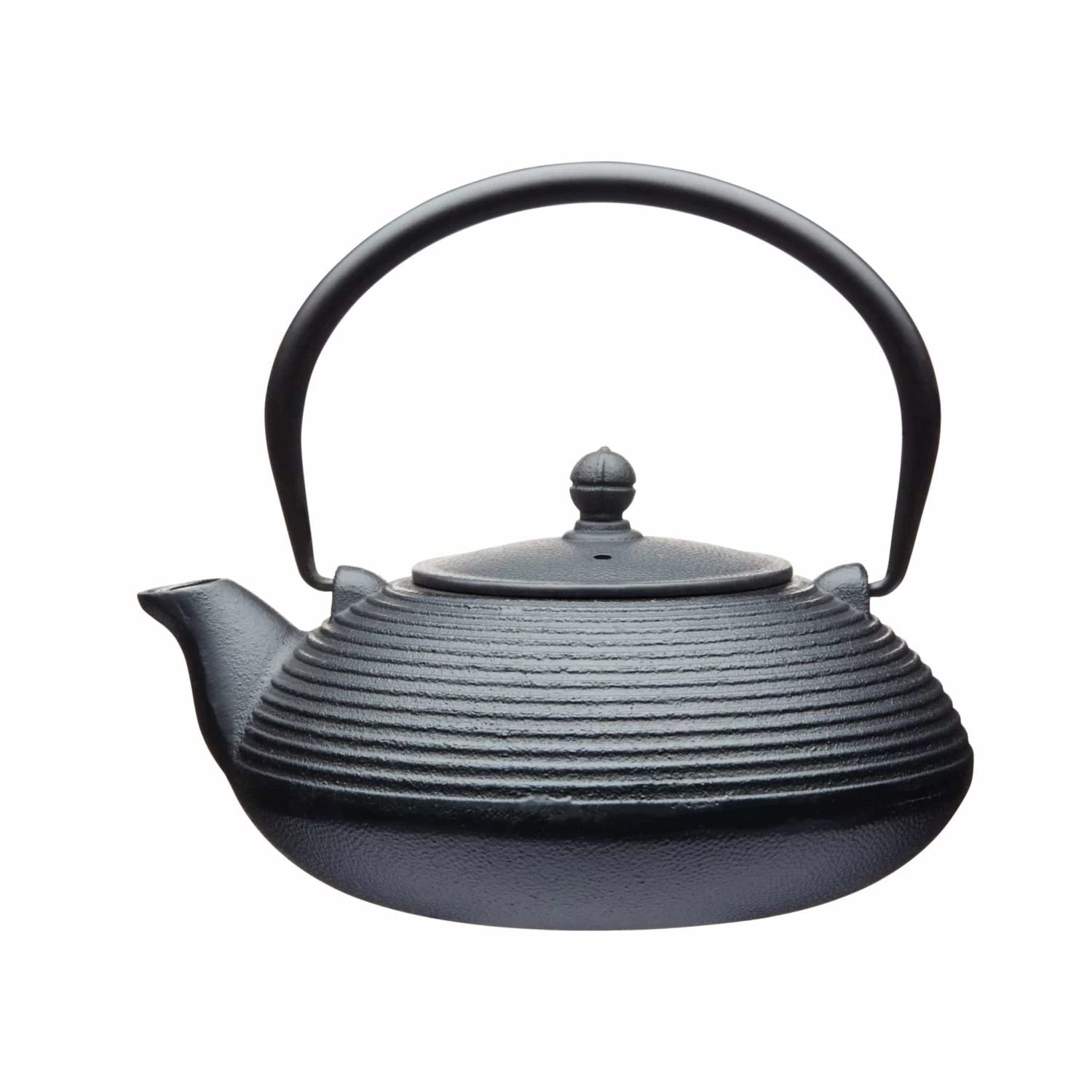 Use this black cast iron teapot for serving loose leaf green tea in Japanese style. Inspired by Tetsubin cast iron kettles, the traditional Japanese design originated for cooking on charcoal, yet still makes a versatile kettle for both a modern kitchen and outdoor cooking. This sleek teapot has a smart ribbed texture – a stunning addition to your cookware.