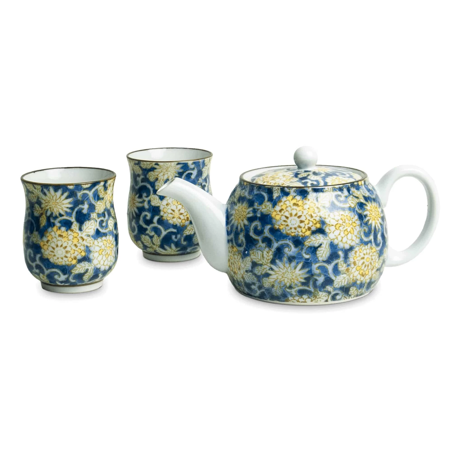 The blue floral Japanese teapot and cup set is ideal for serving tea at breakfast or after a Japanese meal. The set includes an elegant rounded teapot and two matching cups for sharing a brew with someone special.
