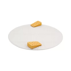 Use Bordallo Pinheiro’s white cheese tray with yellow cheese to serve your favourite dairy delights. Crafted from earthenware, this tactile white tray features two blocks of yellow cheese for a pop of colour. Use this round tray to present wedges of Lancashire and Wensleydale, or whole rounds of camembert. Alternatively, create a colourful grazing platter on this tray. Pair slices of cheese with crackers, charcuterie, fresh figs and grapes.