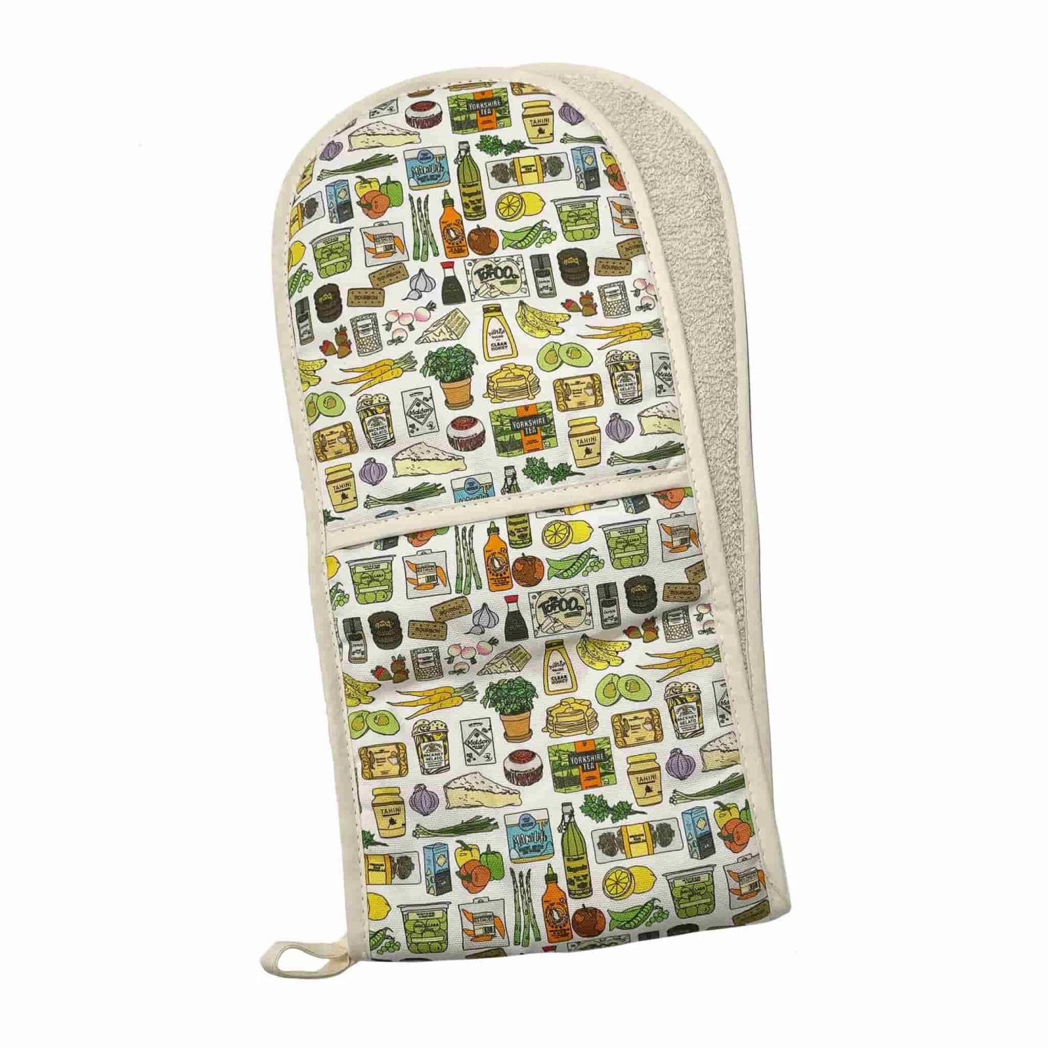 These organic cotton oven gloves are decorated with colourful drawings of tasty ingredients. From tea to tahini, avocado to asparagus, brie to bourbon biscuits, it’s all illustrated on this perfect gift for any baker. Made of 100% organic cotton and printed in the UK.