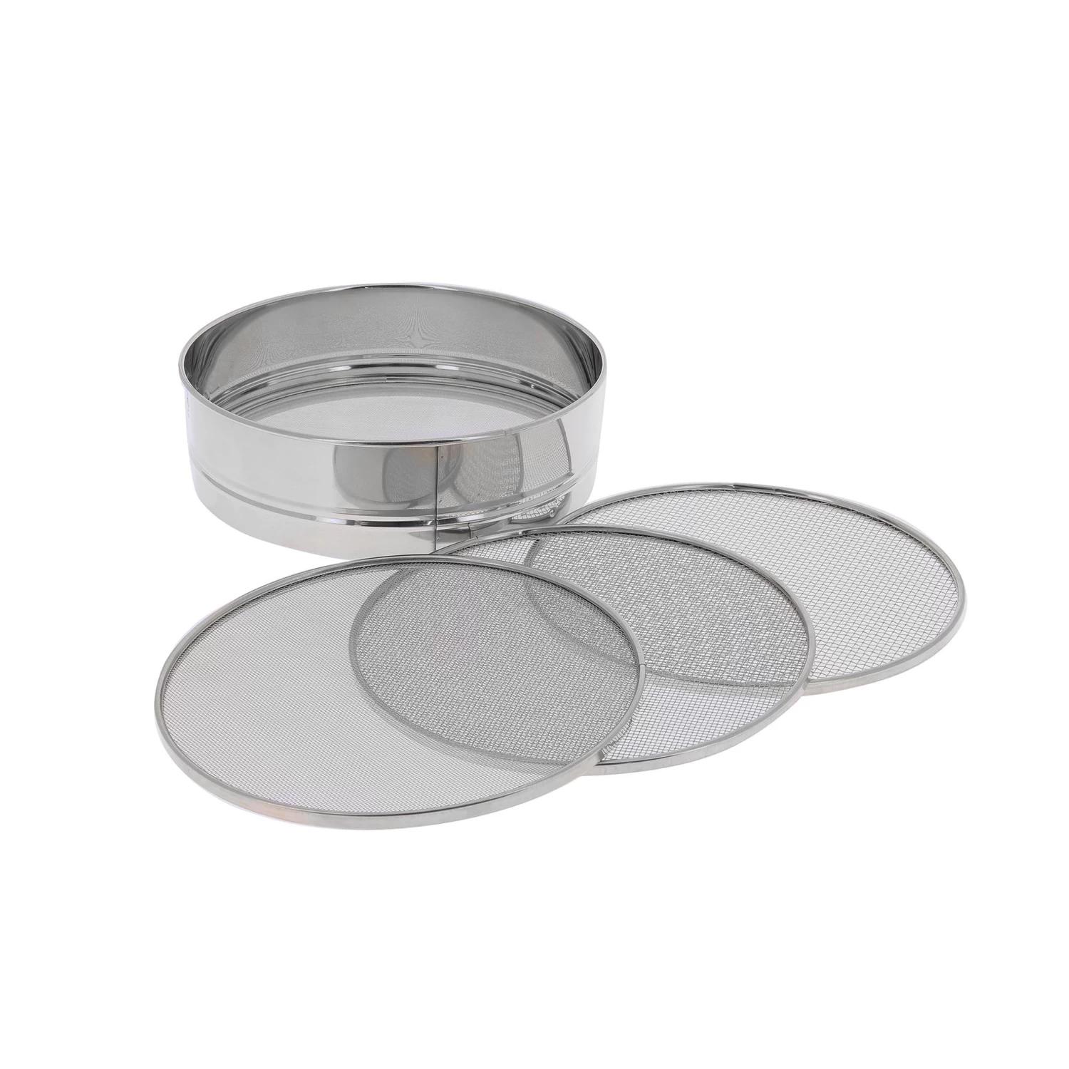 The drum-style, or tamis, sieve includes 4 meshes of different gauges – 3mm, 2mm, 1mm and 0.5mm.