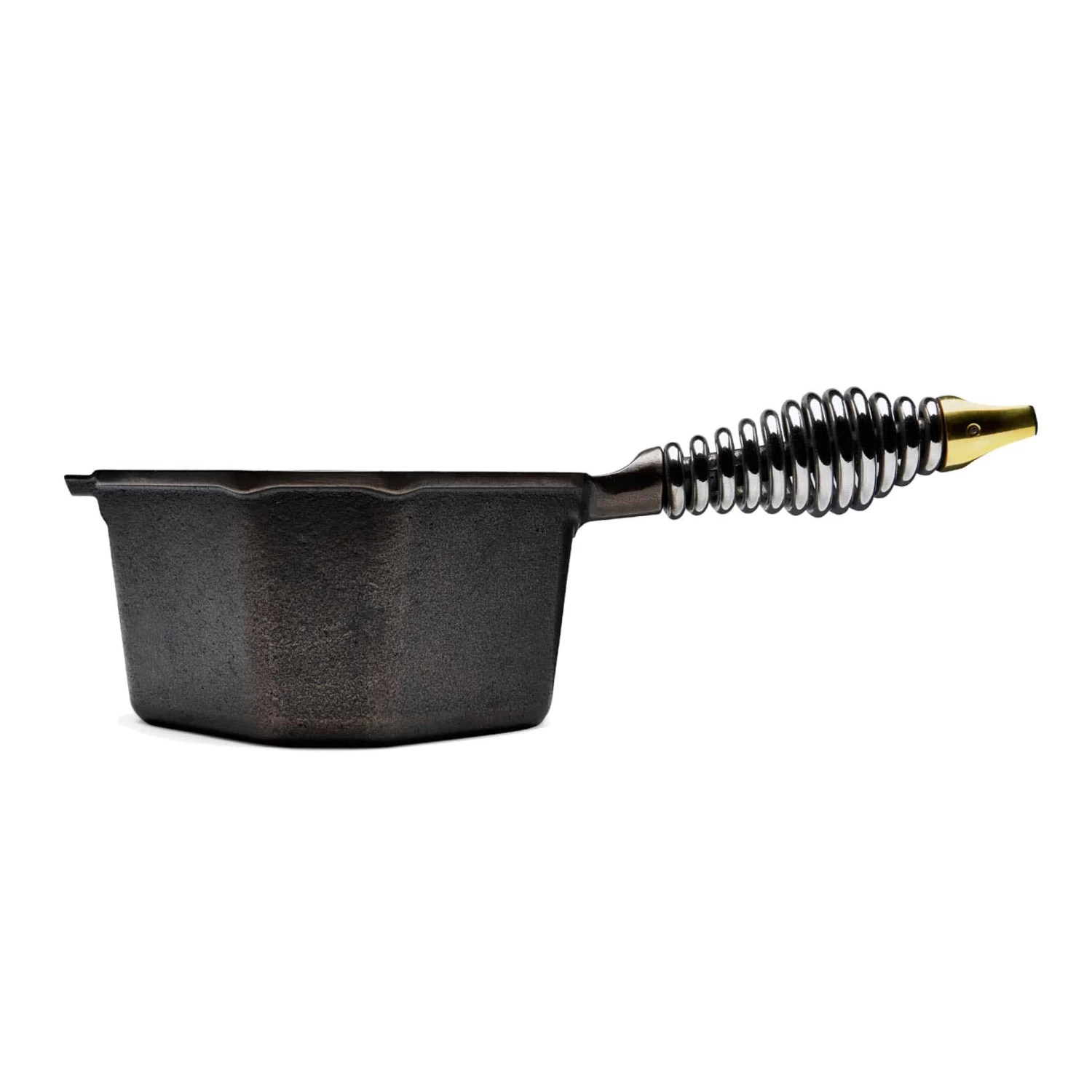 The Finex cast iron saucepan, by American brand, Lodge, is a stylish octagonal shape. Making it easier than ever to pour sauces from your pan into a serving jug. The stainless steel round handle is comfortable to hold, and stays cool.