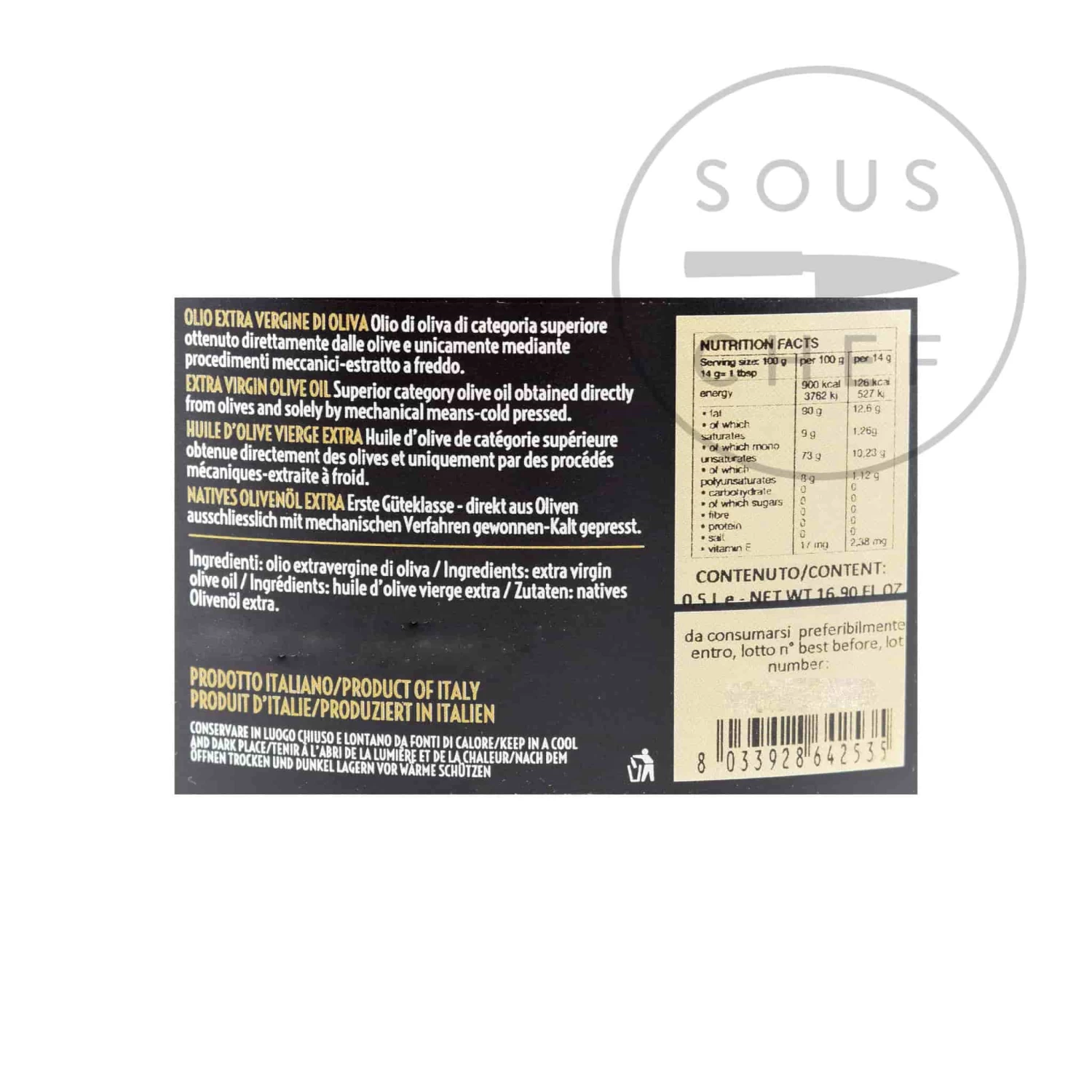 Ingredients: Extra virgin olive oil.