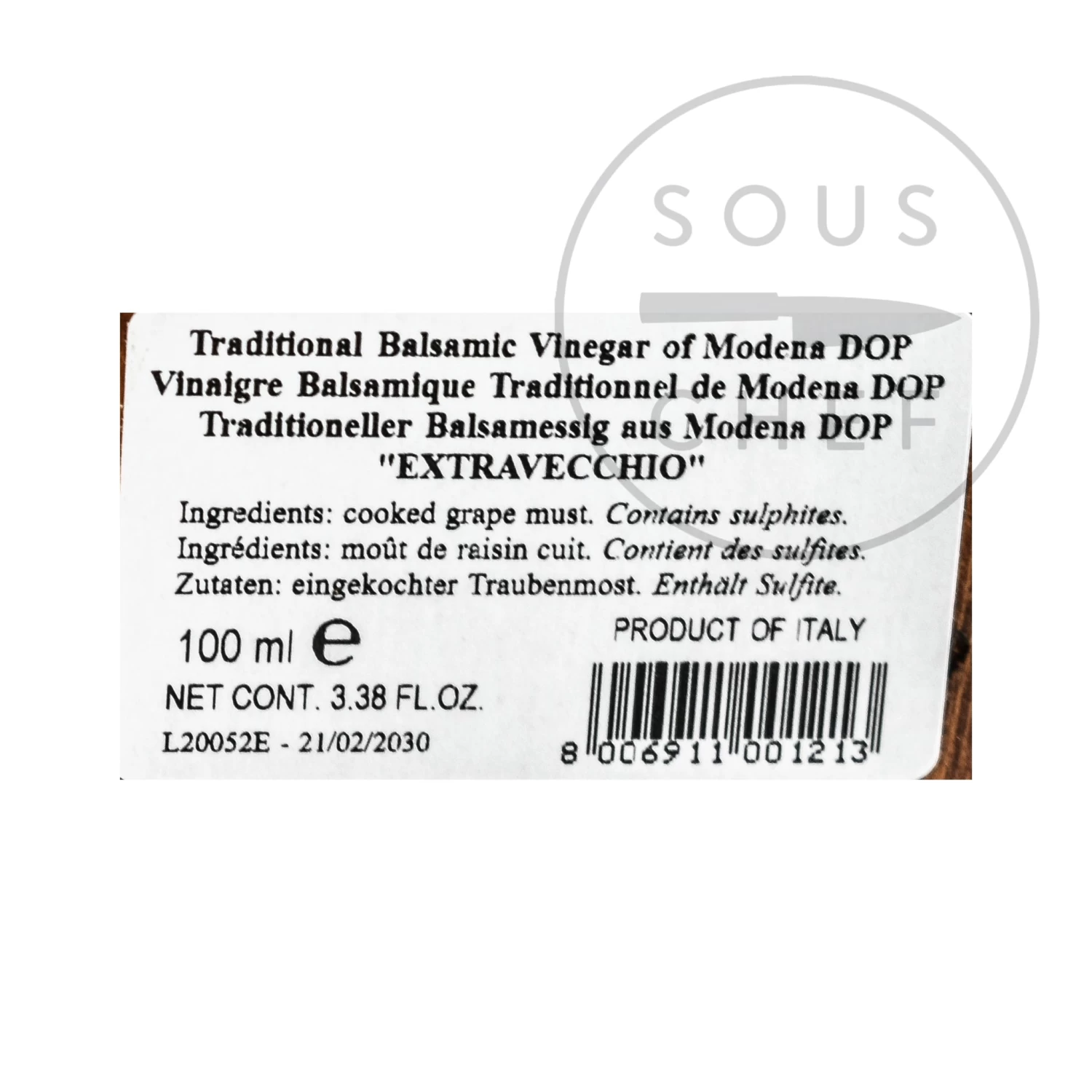 Ingredients: Cooked grape must. Contains sulphites.