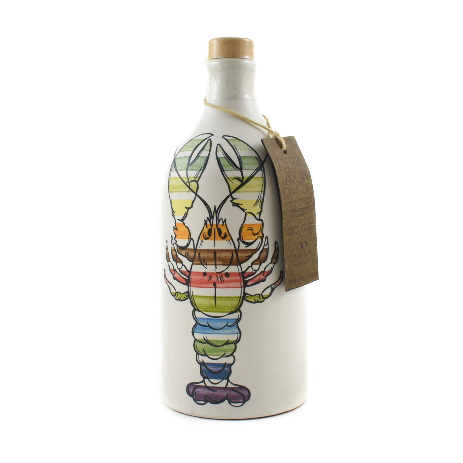 The lobster terracotta bottle is the newest design from Frantoio Muraglia’s stunning hand-painted terracotta bottle collection. Every bottle is handmade, so each one is unique. The terracotta also helps to keep the olive oil tasting its best, by protecting it from light.