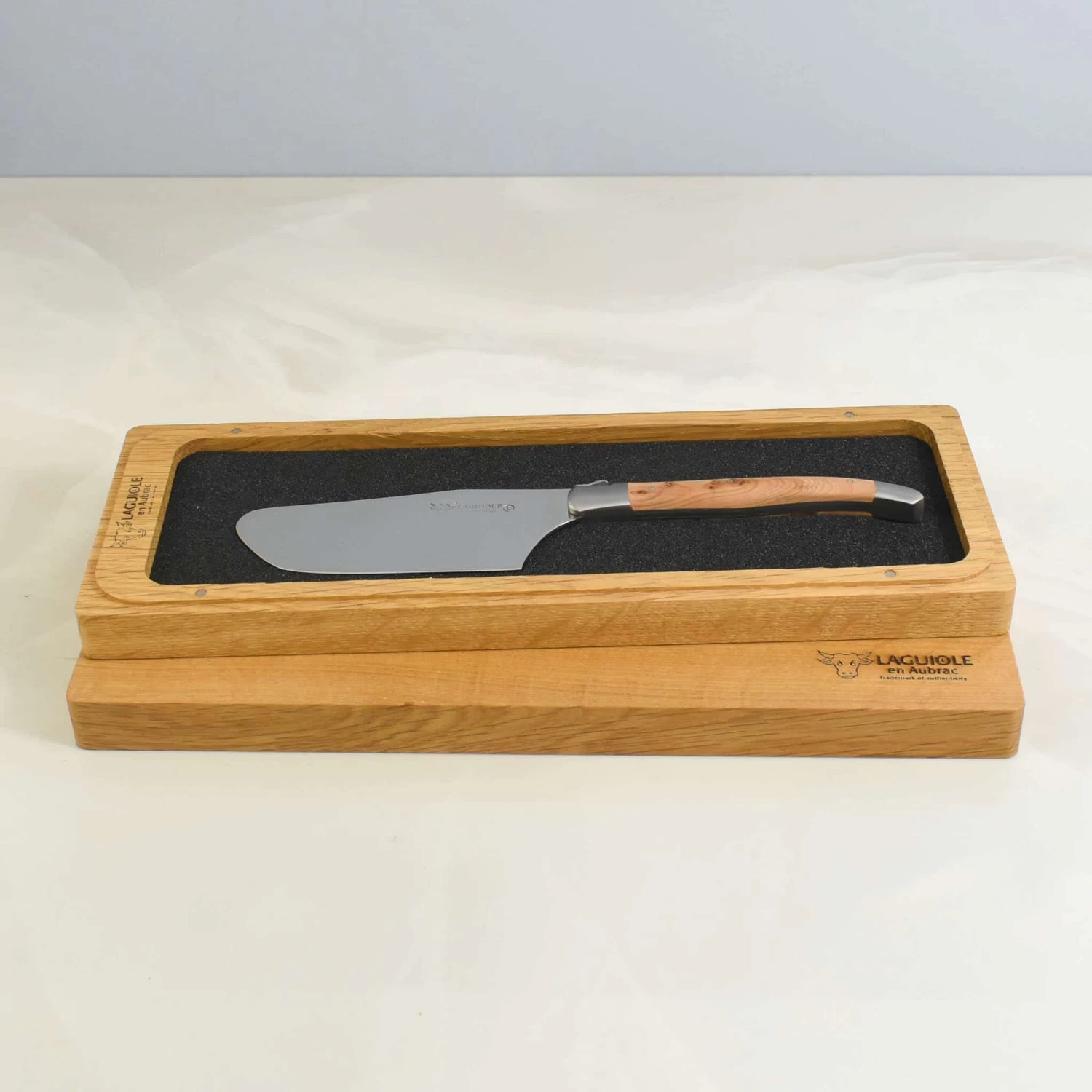 This Laguiole en Aubrac hard cheese knife is perfect for cutting into wheels and wedges of aged hard cheese. With its sleek juniper wood handle, it’s both beautiful and practical – an essential tool for fans of fromage!