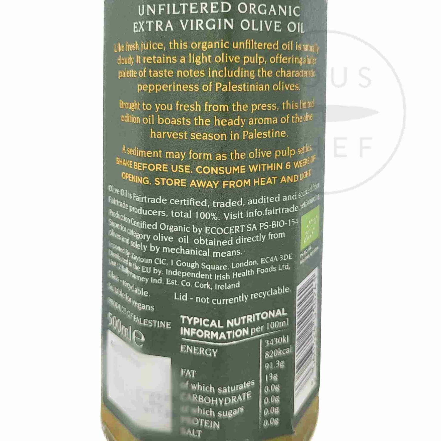 Zaytoun’s limited edition organic olive oil is unfiltered, giving it a naturally cloudy appearance and a heady, fruity aroma. The flavour is rich and intense with the characteristic pepperiness of Palestinian olives. Use it as a finishing oil to dress Middle Eastern salads, drizzle over grilled fish or mix with za’atar as a dip for warm bread.