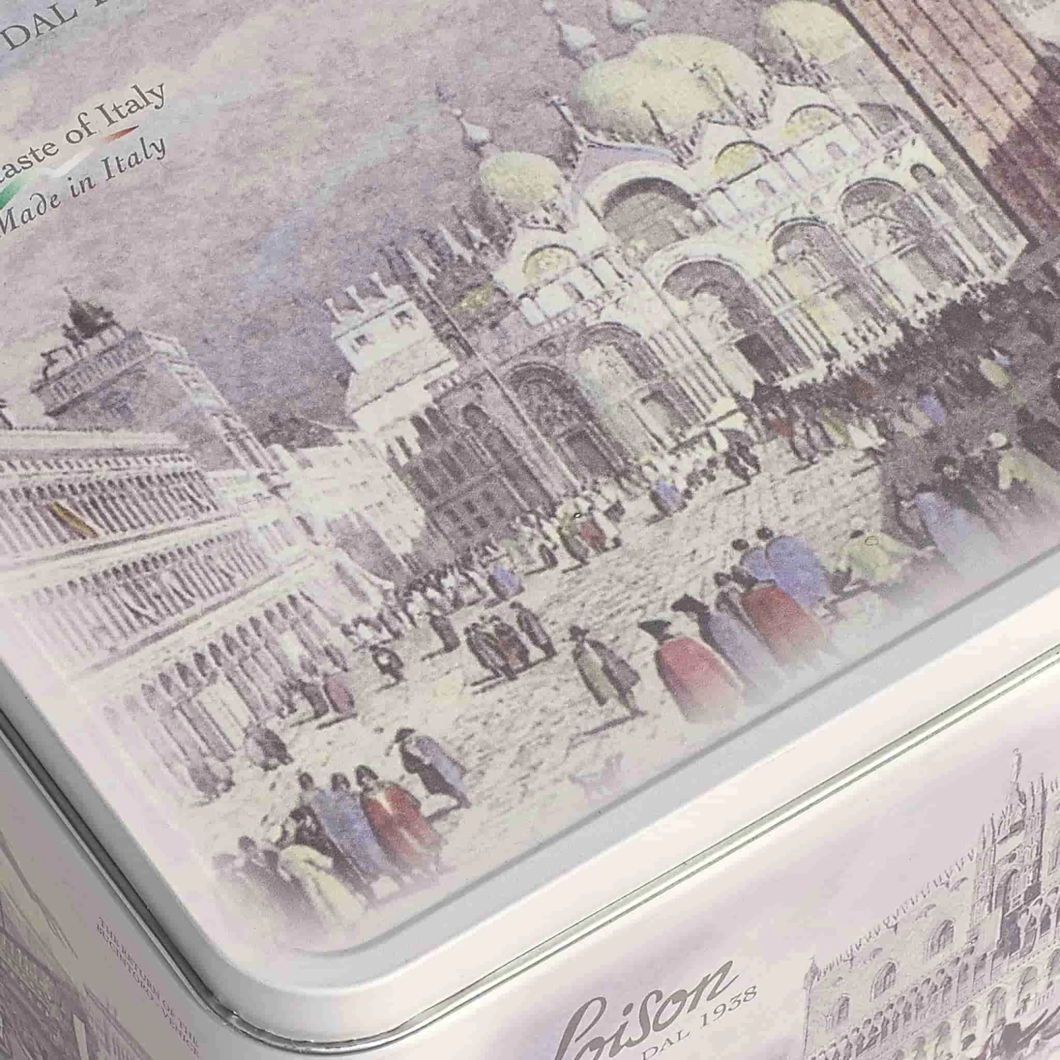 Loison’s exquisite wrapping features images of some of the most recognizable symbols of Venice: the Carnival masks, the Lion of St. Mark and the gondolas in the Grand Canal.