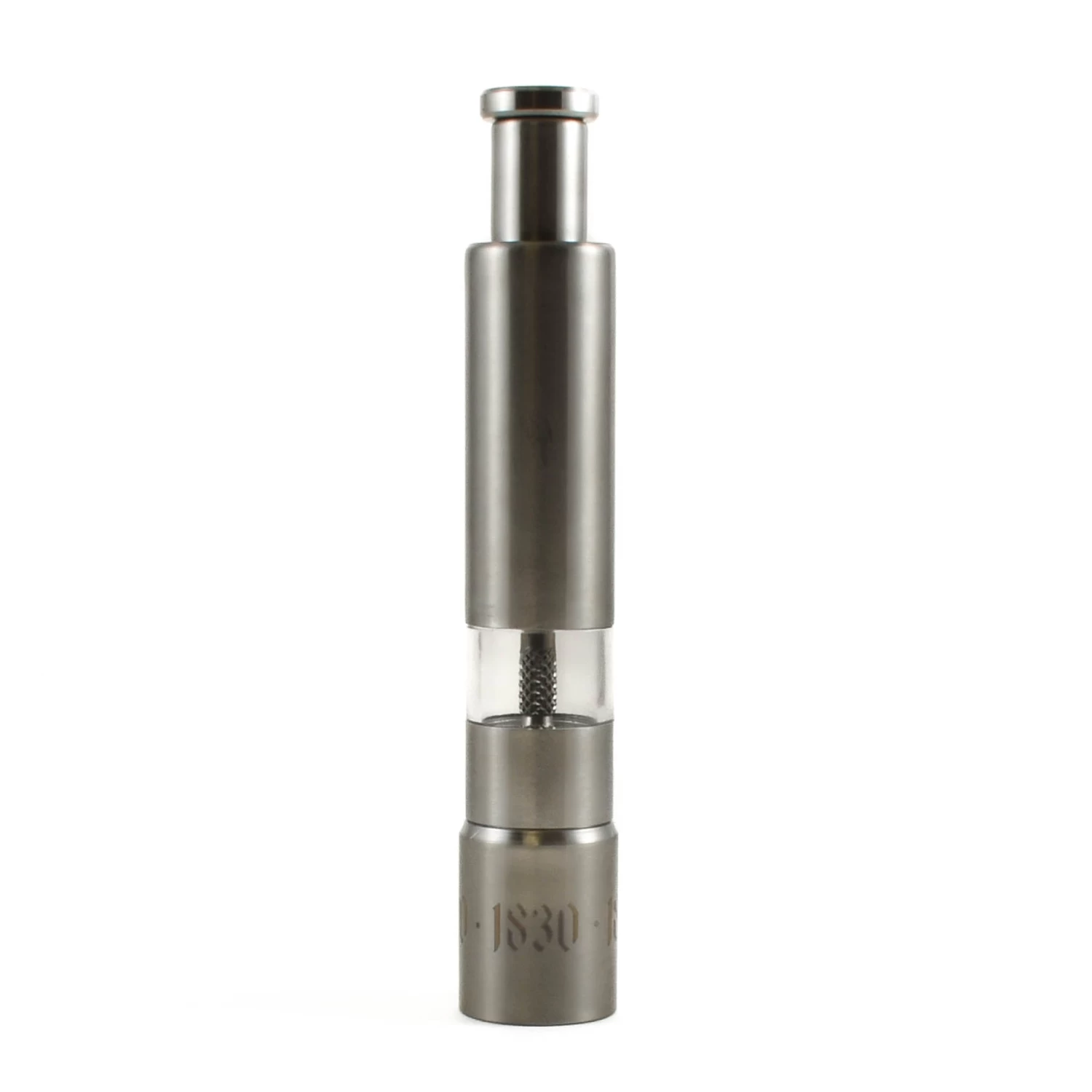 The Maison Bremond stainless steel push pepper grinder is an elegant and practical addition to your kitchen. Ideal for cooking, this sleek pepper grinder has a push mechanism that means there is no need for batteries. Simply press down the top for finely ground pepper.