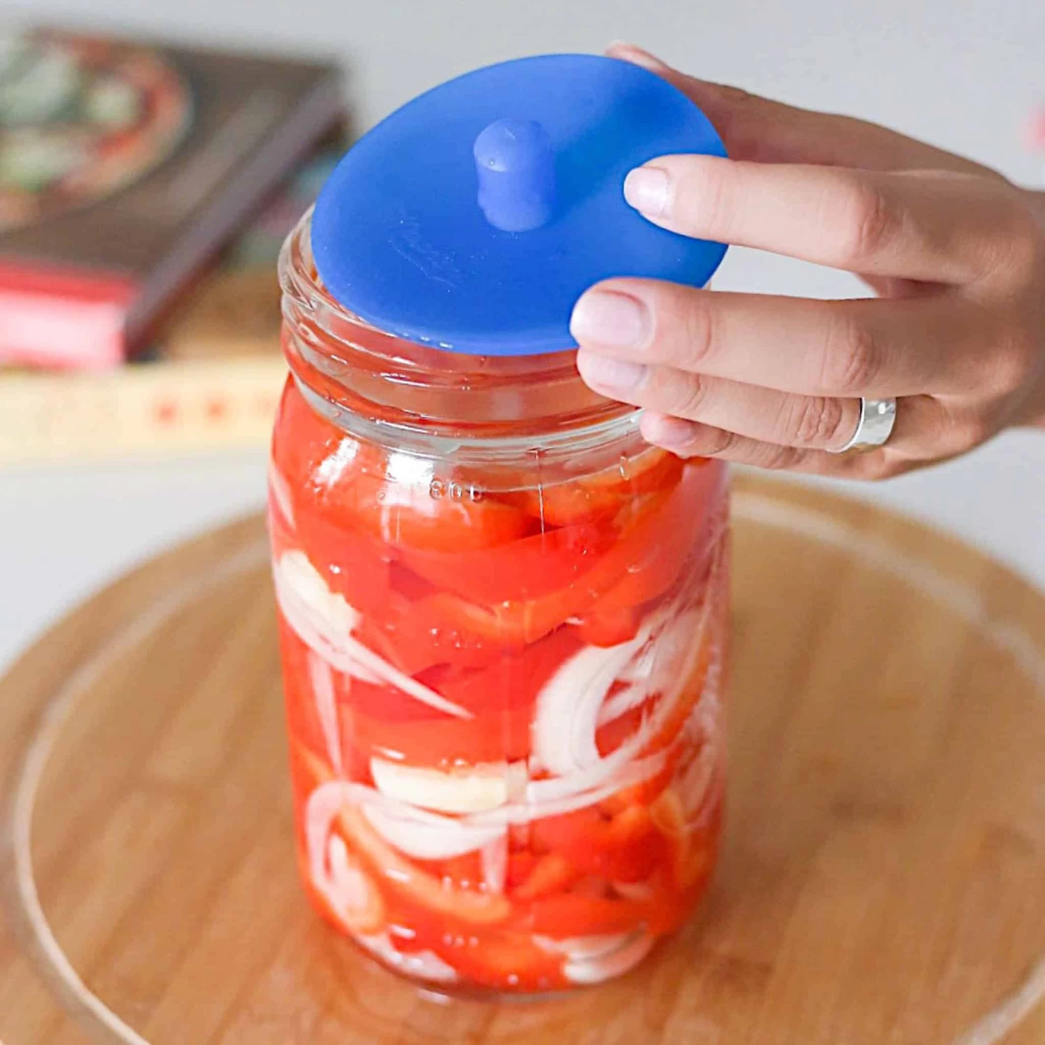 With Masontops wide mouth pickle pipes, there’s no need to manually burp your pickles. The pickle pipes are silicone airlocks, designed specifically for Mason jars. They feature a one-way valve that automatically releases gas, without letting in any oxygen that can cause spoilage. This means you don’t need to babysit your pickles or manually burp them.