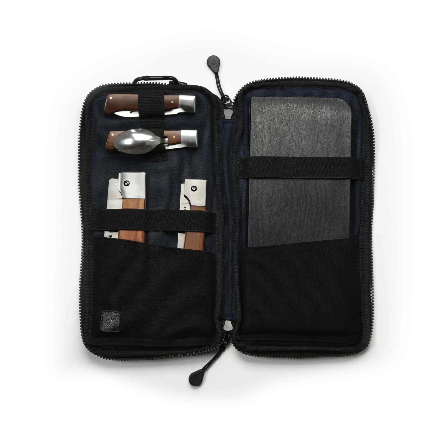 - Waxed Canvas Adventure Chef Case – an easy-to-clean and durable zipped case which has pockets for the knife and board, as well as an additional knife pocket and 2 secure elastic bands for smaller folding utensils.