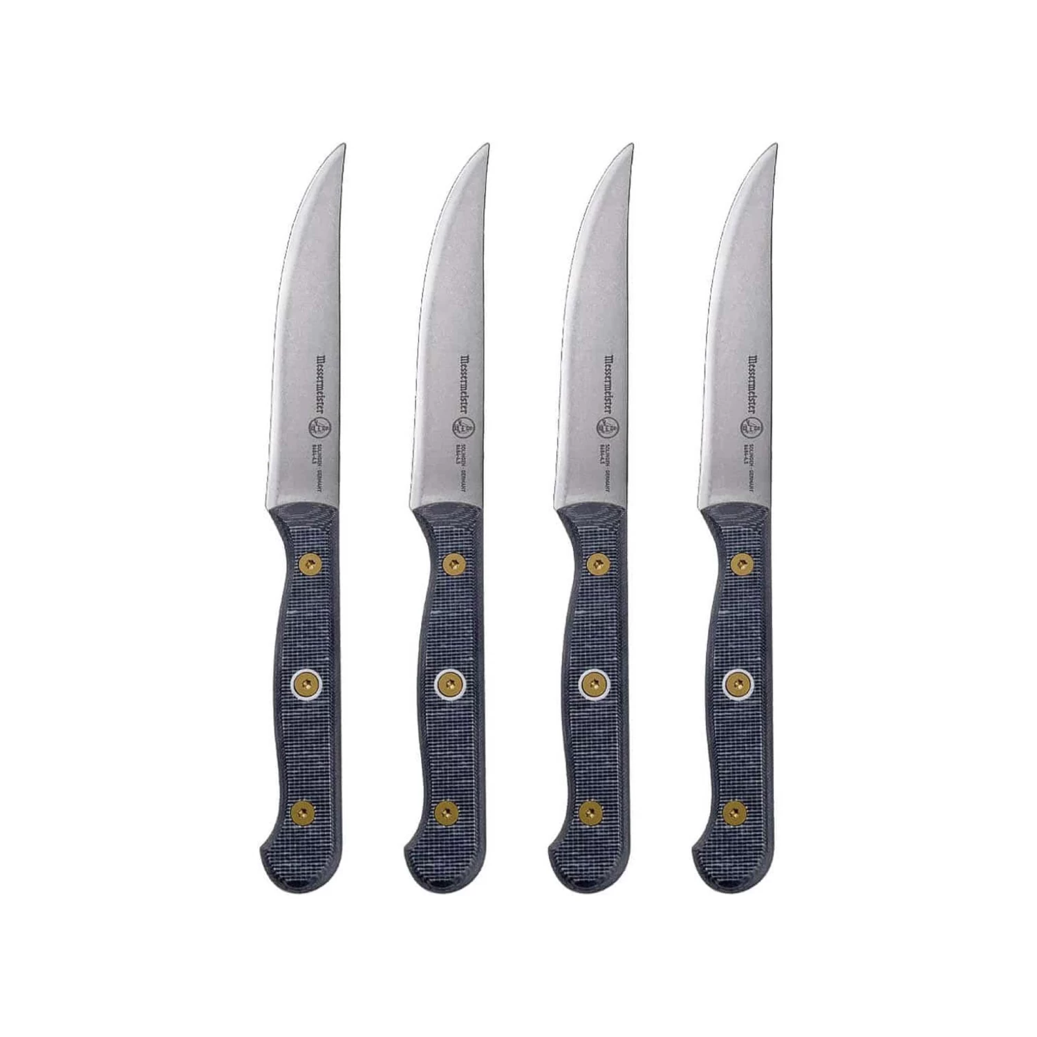 Use the Messermeister custom steak knives to effortlessly cut through meat, creating precise slices. Made in Solingen, Germany – which is world-renowned for quality stainless steel – these knives rank a high 58 on the Rockwell scale. The hard steel means the blade will hold its sharp, 15 degree edge for longer.