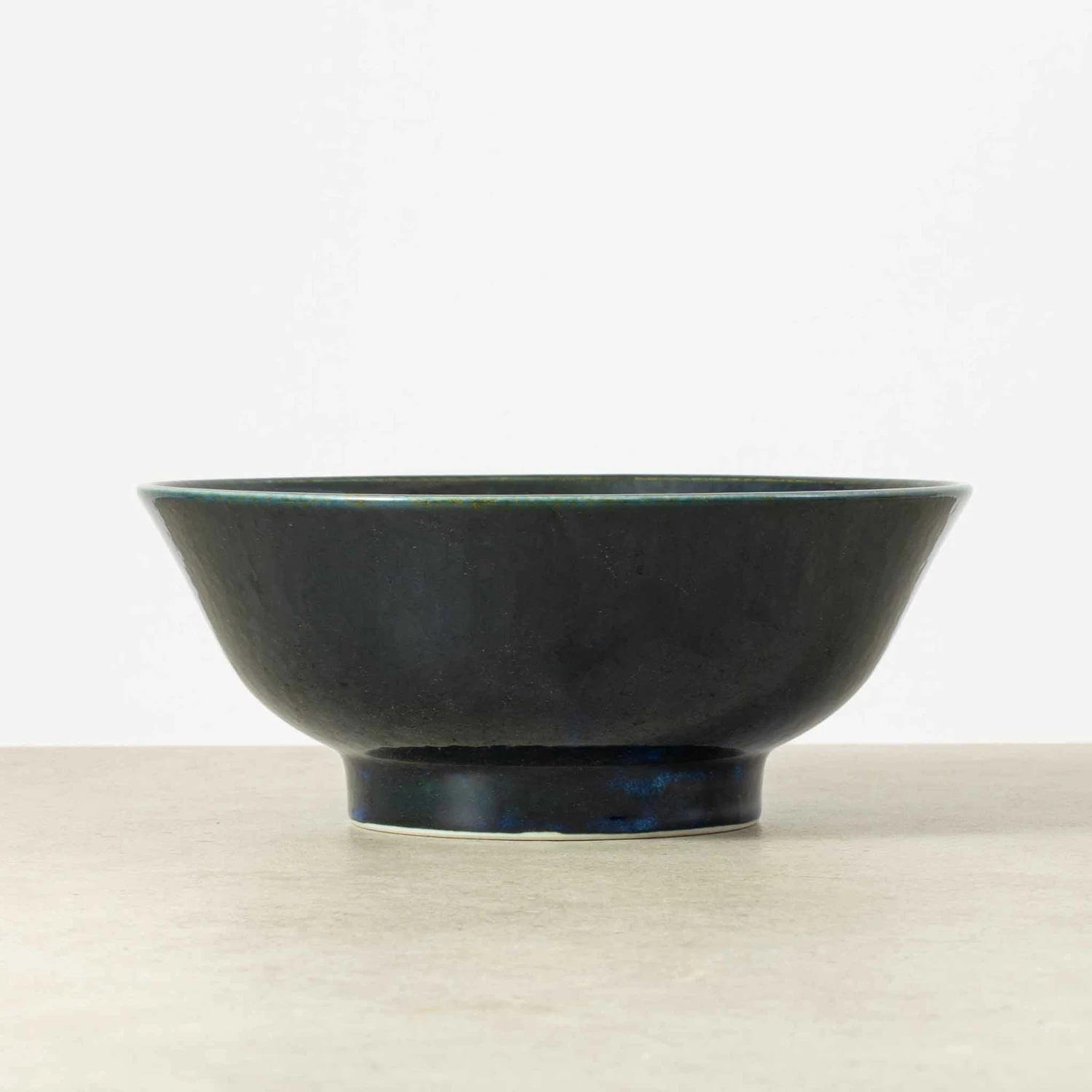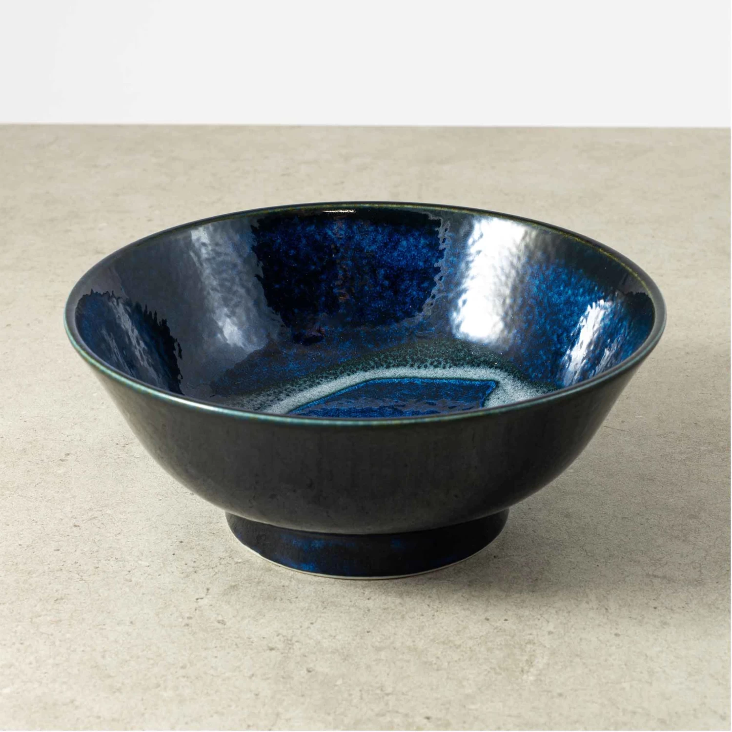 The ramen bowl is finished with a multi-tonal deep blue glaze, making it look like a serene lake.