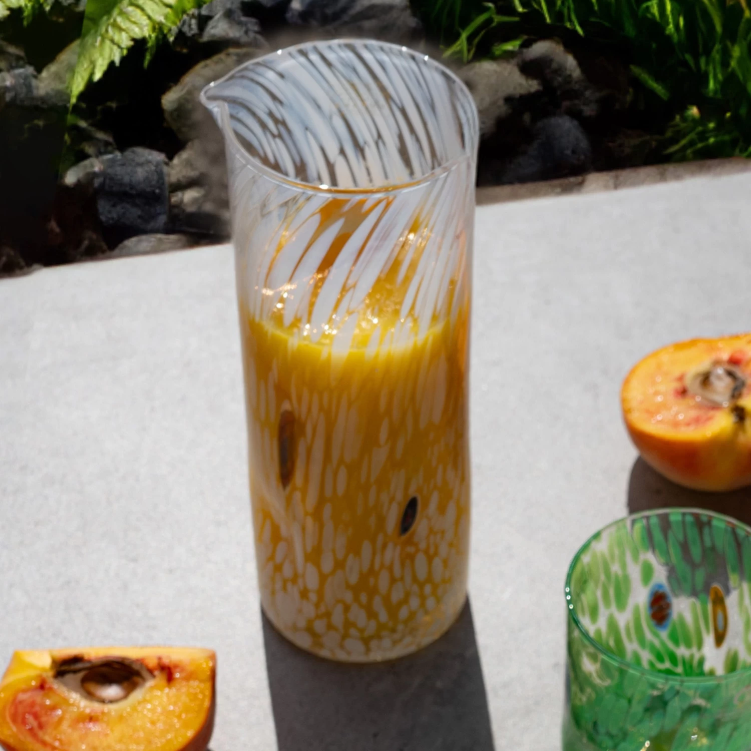 Use this striking Murano glass pitcher to serve water, juice or a big batch of cocktails at your next dinner party. Handmade in Italy, the pitcher features a unique frosted design with splashes of blue and brown. Place it in the centre of your table for guests to help themselves – it’s sure to be a talking point!