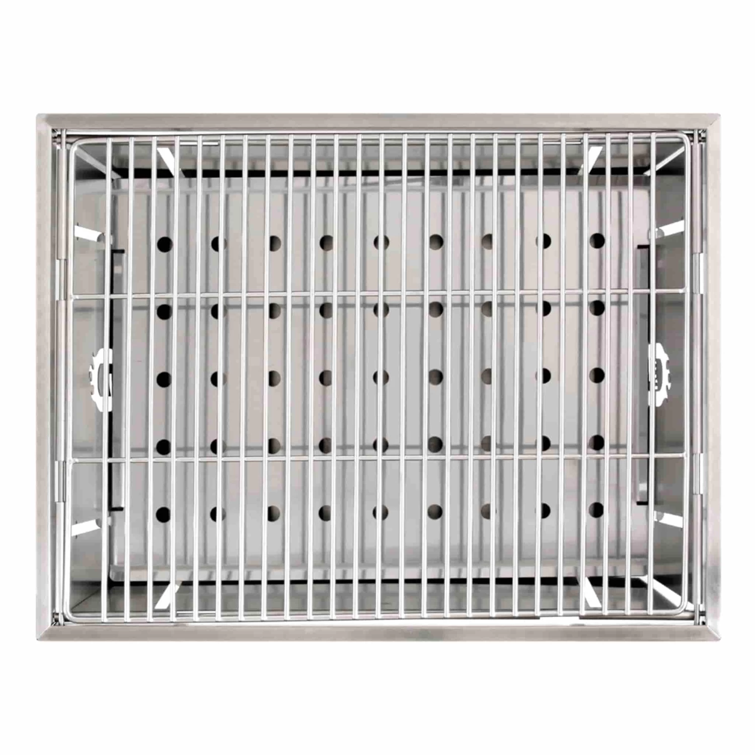 The sizeable surface area of the 30cm x 38cm grill makes it easy to quickly satisfy a hungry crowd – batch cook sausages and burgers for up to 12 people. The ProQ Flatdog only requires an inch of charcoal for efficient cooking, but the raised grill also allows for stacking of coals if more heat is required.