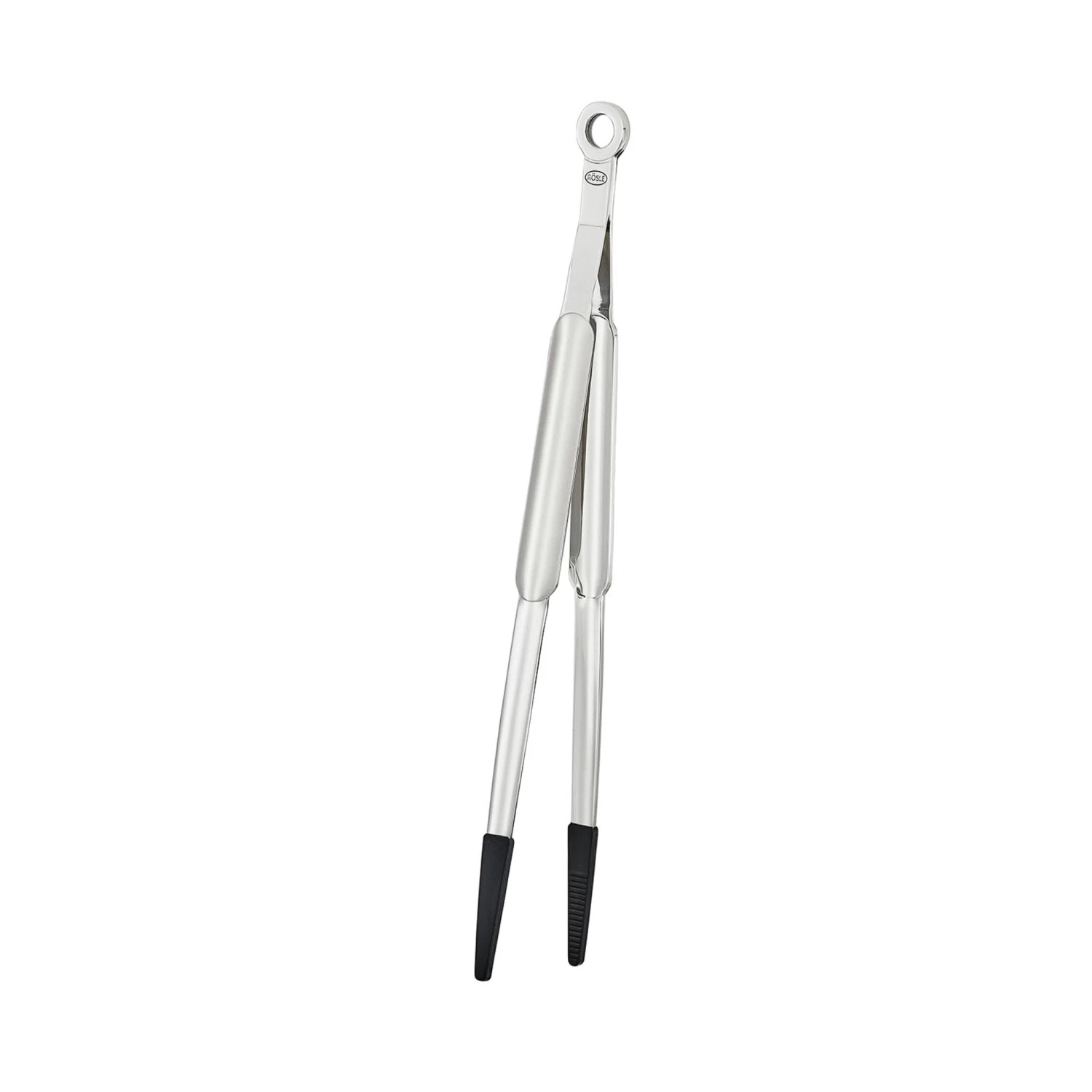 Rosle’s Modern Classics fine tongs with silicone tips make easy work of lifting, turning and serving shellfish, seafood and smaller, more intricate ingredients. Great for cooking and roasting, the long stainless steel tongs have a pointed silicone tip – use when cooking in non-stick pans to prevent scratching.