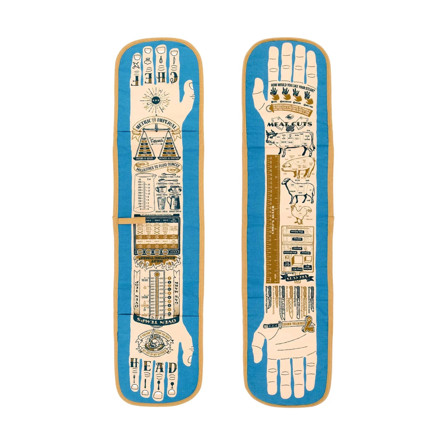 Stuart Gardiner’s ‘Head Chef’ double oven glove adds instant Michelin mojo to your kitchen. The towel features roasting times, chopping guides and temperature conversion tables on your chef’s tattooed arms – giving you the extra edge while you cook. These oven gloves look great, and help you improve your cooking at the same time: yes chef!