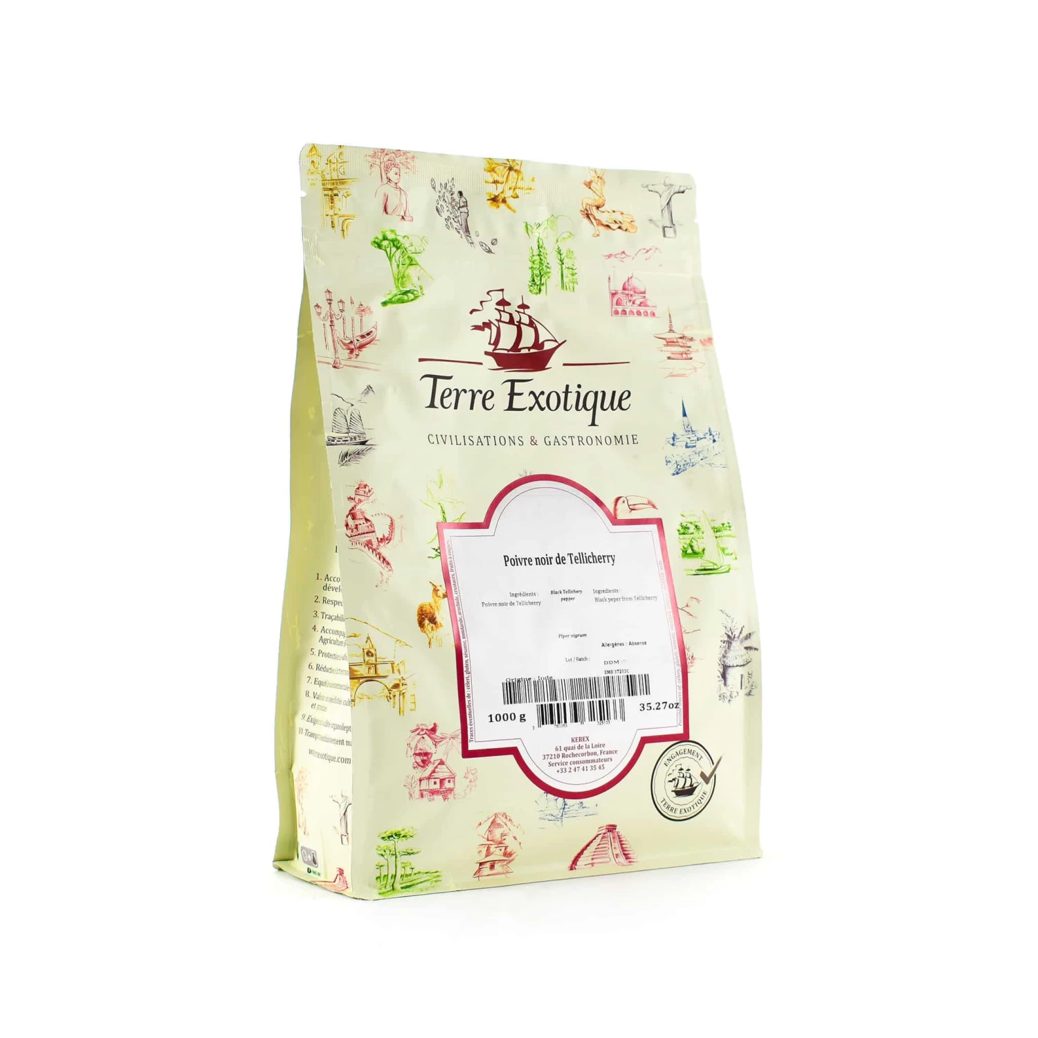 This 1kg bag is ideal for professional kitchens – the black Tellicherry pepper comes in opaque packaging, protecting it from light and preserving the fresh flavour, while the flat base makes it easy to store.