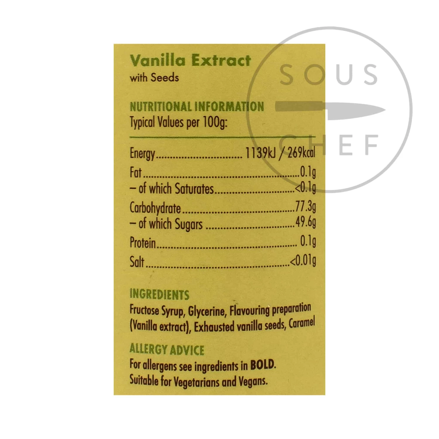 This premium quality natural glucose based vanilla extract is rich with vanilla seeds – ideal for making real vanilla ice cream, custards, and in cakes and baking. The very large bottle is safe and easy to handle, made from squeezy plastic and designed for restaurants and catering kitchens.