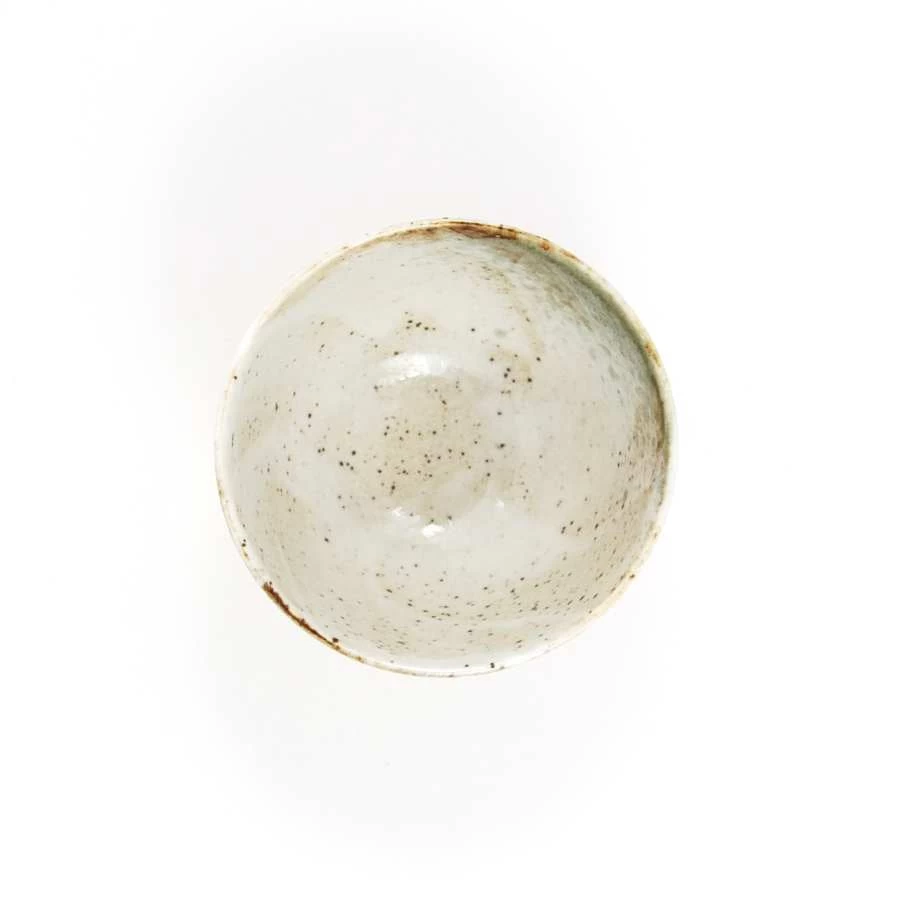 Textured, small Japanese stoneware bowl in neutral colours, traditionally used for rice.